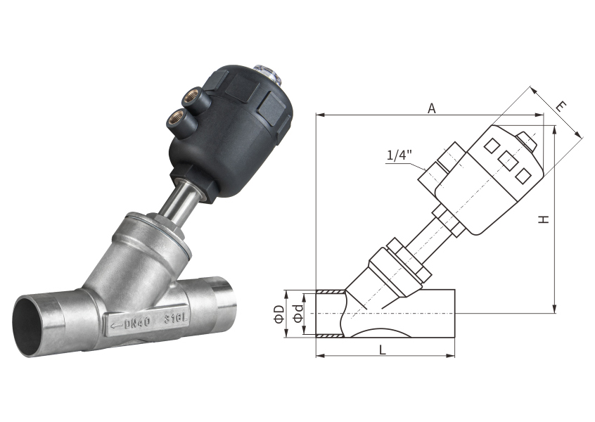 • A款-不銹鋼頭氣動焊接角座閥